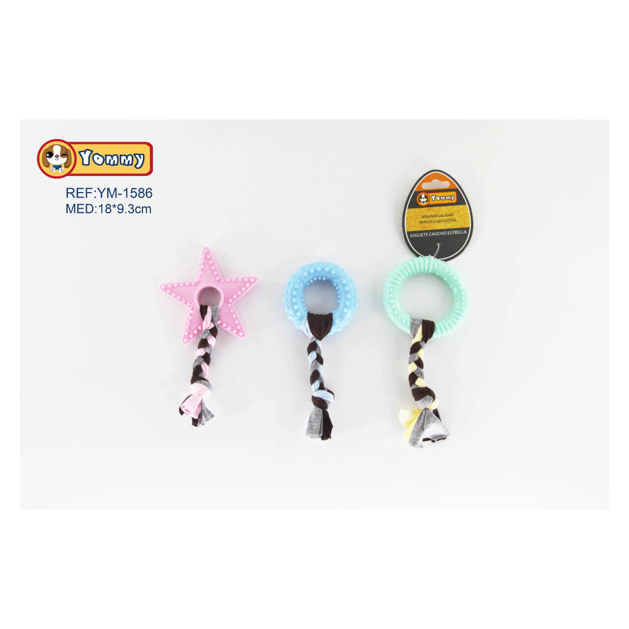 Jucarie pentru caini, stea-cerc sfoara si TPR-cauciuc termoplastic.